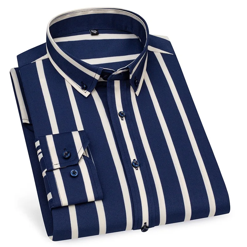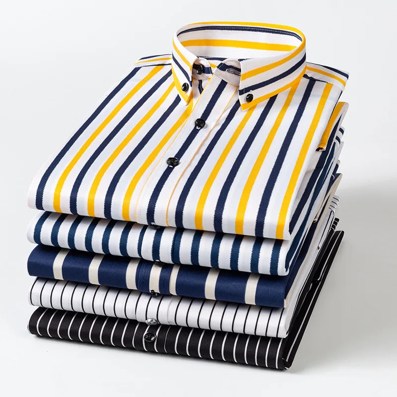 قميص رجالي بأكمام طويلة ، غير رسمي مخطط ، جودة عالية ، نحيف ، مريح ، جيد التهوية ، قمة الموضة ، الربيع ، الصيف