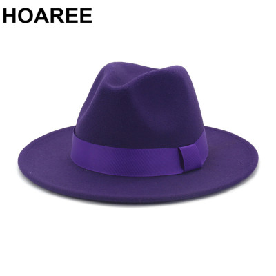 HOAREE الأرجواني الصوف ورأى الجاز قبعات فيدورا الرجال النساء واسعة حافة سمبريرو النمط البريطاني تريلبي قبعة بنما الرسمية الصلبة فستان قبعة