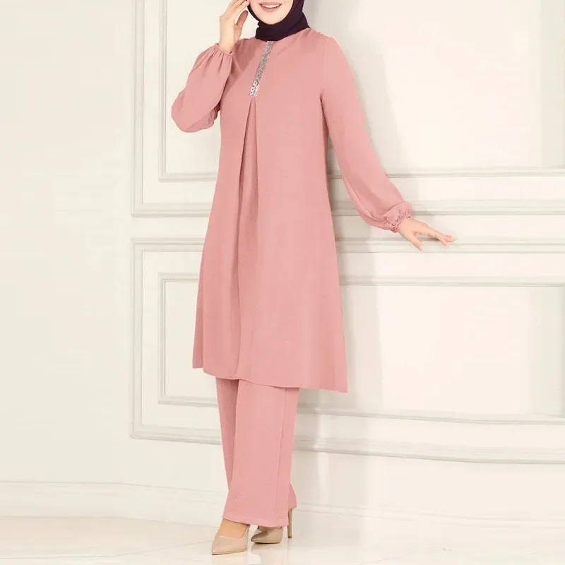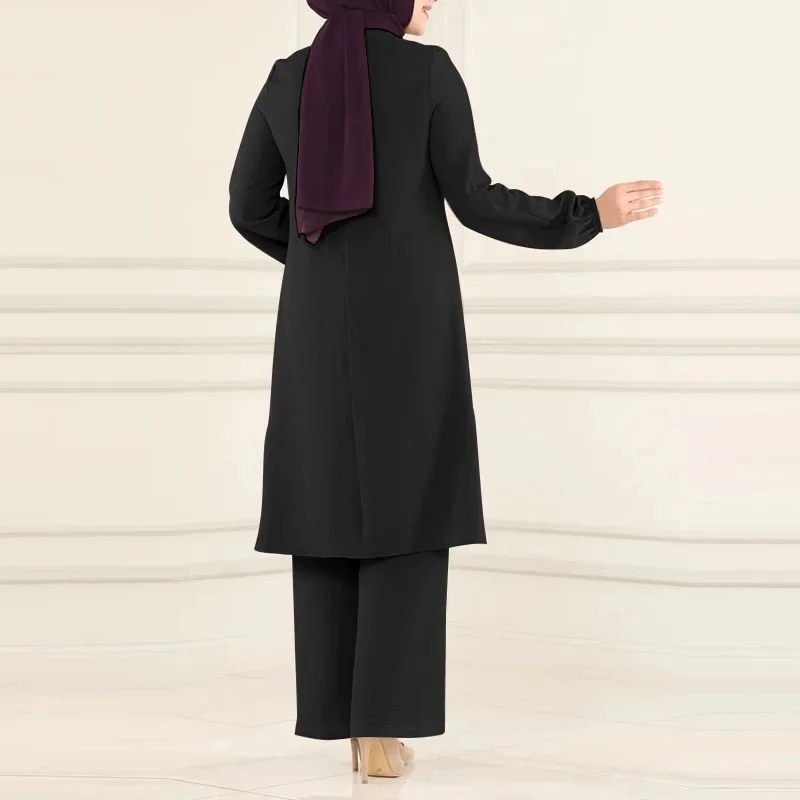 • Elegant Design : The H710 Muslim Women's Fashion suit features an elegant design with solid color long sleeves and wide leg pants, perfect for spring and autumn.