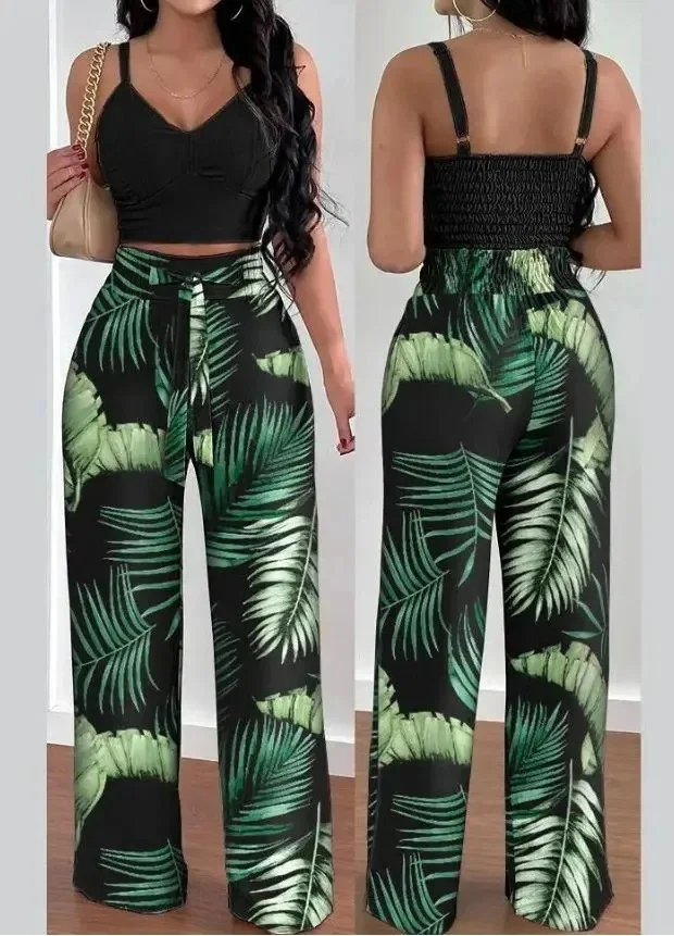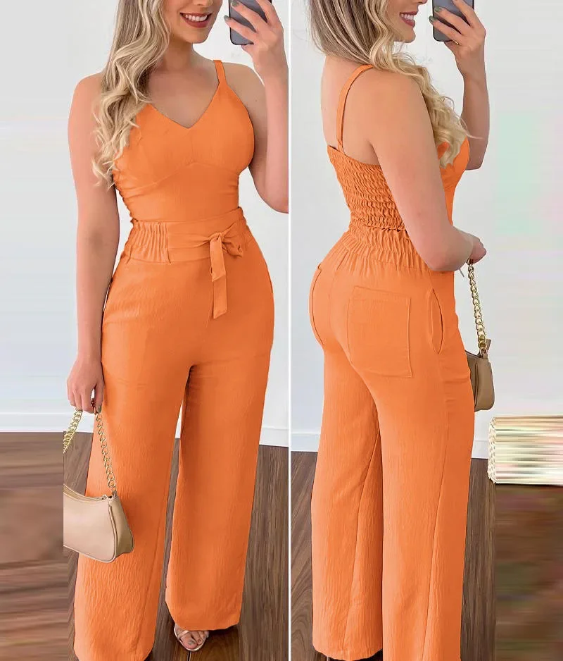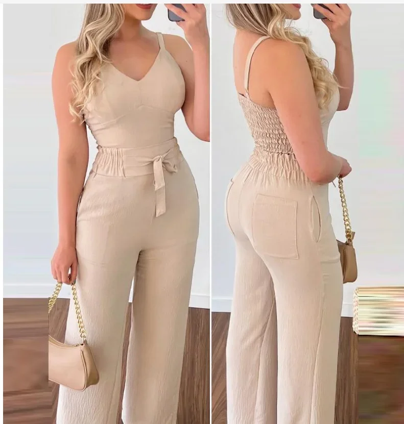 • التصميم والأسلوب :تتميز هذه البدلة بتصميم مثير بدون ظهر وسراويل واسعة الساق، مما يبرز الأناقة والرقي.